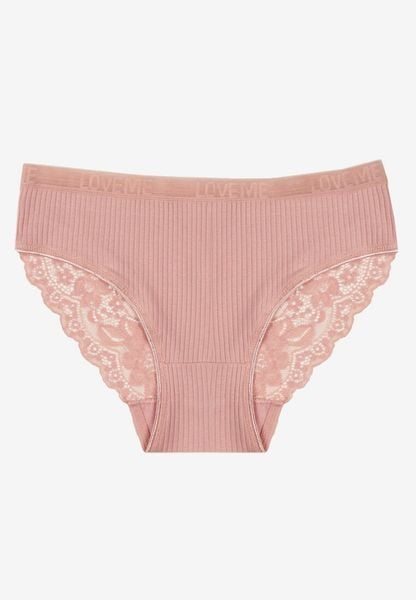 Ciemnoróżowe Prążkowane Majtki Figi z Bawełny Zdobione Koronką Erwelia