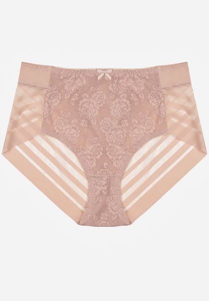 Różowe Majtki Figi z Wysokim Stanem Zdobione Koronką i Siateczką Helieth