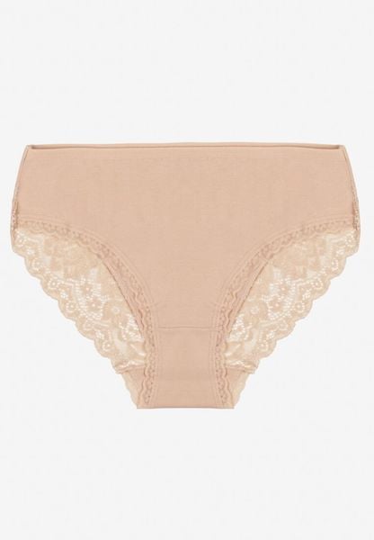 Beżowe Majtki Figi Zdobione Koronką Venissella