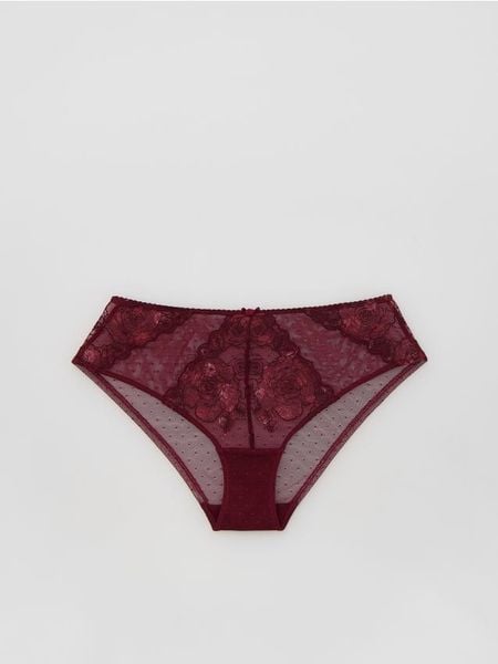 Majtki typu figi, wykonane z siateczki z haftem.