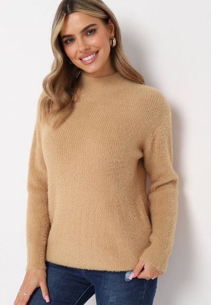 Jasnobrązowy Golf z Pluszowej Dzianiny Wykończony Ściągaczami Zirrna