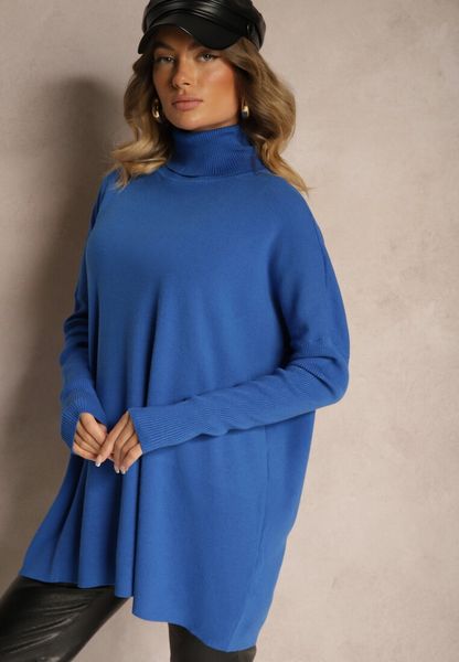 Niebieski Golf Dzianinowy z Długim Rękawem Halaian