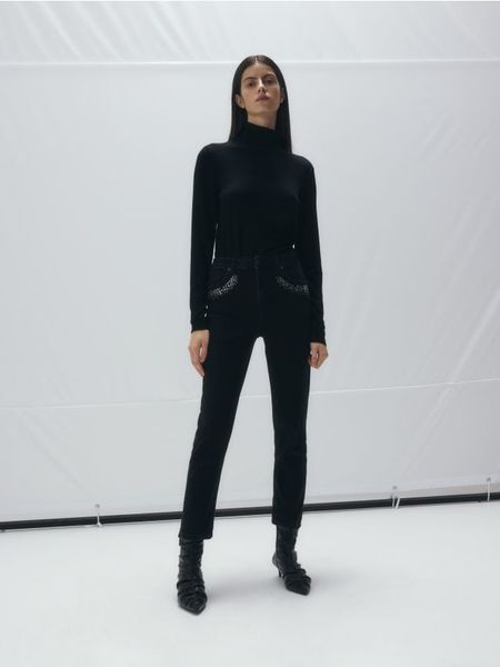 Jeansy o kroju boyfriend, wykonane z bawełnianej tkaniny.