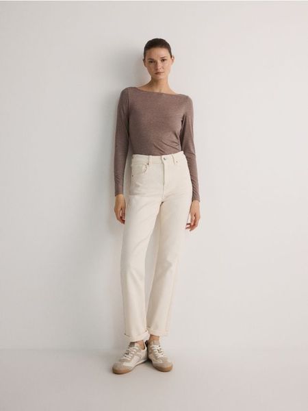 Jeansy o prostym kroju ze średnim stanem, wykonane z bawełnianej tkaniny.