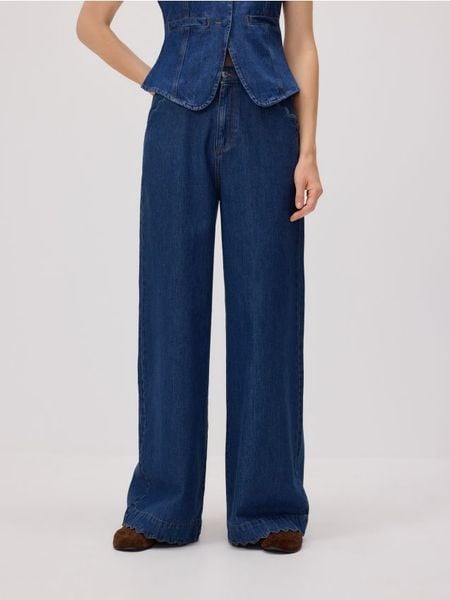Jeansy wide leg z ozdobnym wykończeniem – niebieski