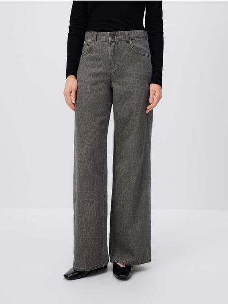 Jeansy o swobodnym kroju, wykonane z bawełnianej tkaniny.