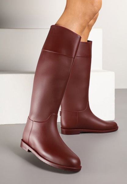 Bordowe Kalosze Oficerki z Wysoką Cholewką Ravreia