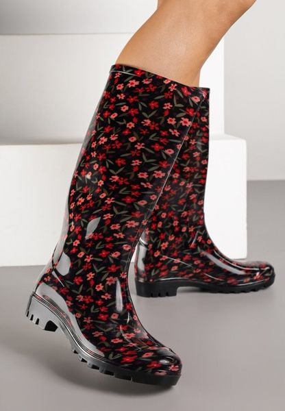 Czarne Kalosze w Kwiatowy Wzór Jerissa