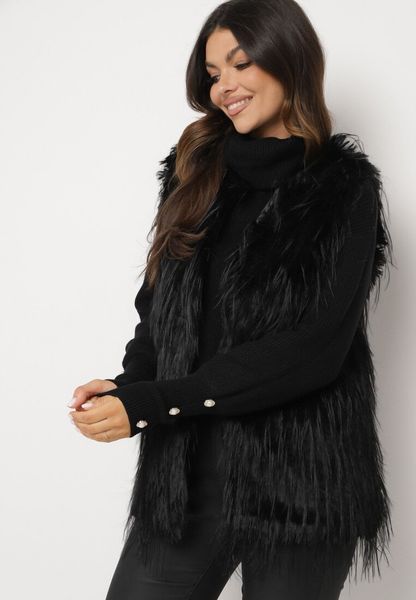 Czarna Kamizelka Futrzana ze Wsuwanymi Kieszeniami Venzira
