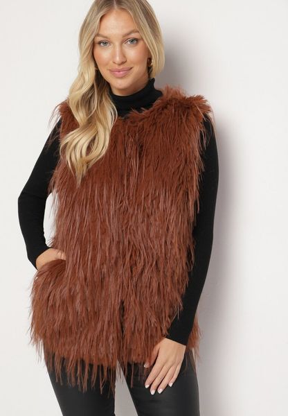 Brązowa Kamizelka Futrzana ze Wsuwanymi Kieszeniami Venzira