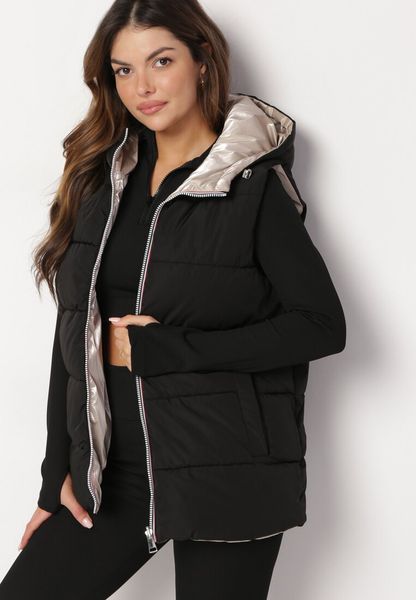Czarna Dwustronna Kamizelka z Pikowaniem i Kapturem Welini