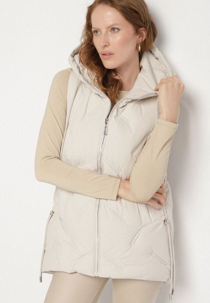 Biała Casualowa Kamizelka z Kapturem i Pikowanymi Przeszyciami Caletta