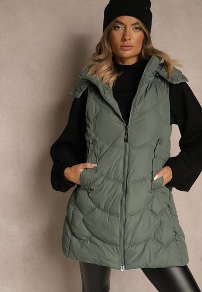 Zielona Pikowana Kamizelka z Odpinanym Kapturem Tulanea