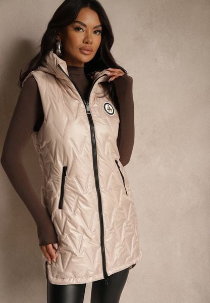 Złoto-Różowa Kamizelka Dwustronna z Pikowanymi Przeszyciami i Kapturem Erisabe