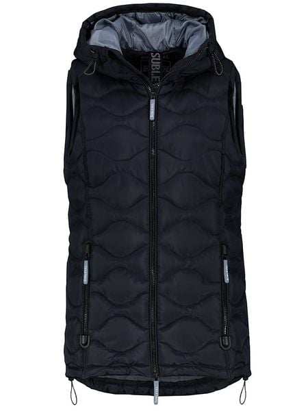Granatowa Pikowana Kamizelka z Zasuwanymi Kieszeniami i Odpinanym Kapturem Cianefela