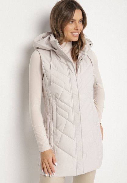 Jasnoszara Taliowana Kamizelka z Pikowanymi Przeszyciami i Kapturem Tuloria