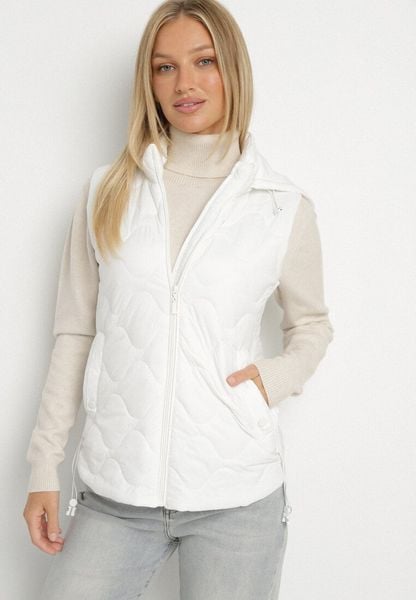 Biała Pikowana Kamizelka z Odpinanym Kapturem i Kieszeniami na Suwak Anoria