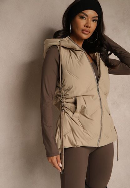 Beżowa Pikowana Kamizelka z Kapturem w Stylu Basic Cleopie