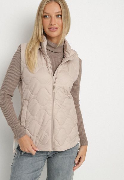 Ciemnobeżowa Kamizelka z Odpinanym Kapturem Pikowana z Kieszeniami Quillasa