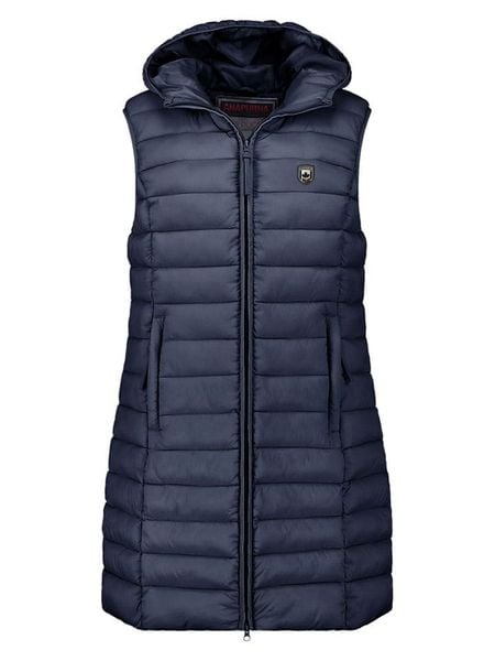 Granatowa Pikowana Kamizelka z Zasuwanymi Kieszeniami i Odpinanym Kapturem Cianefela