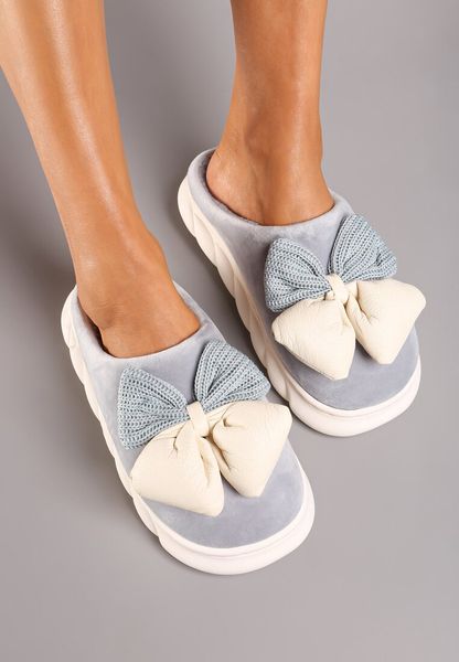 Szare Kapcie na Płaskiej Podeszwie z Futerkiem i Kokardą Dezilaine
