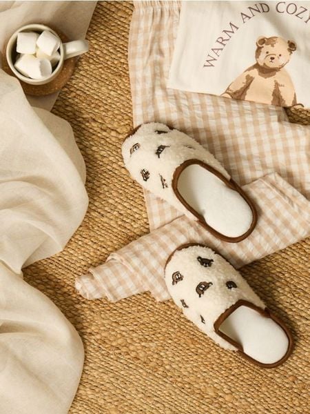 Sinsay – Kapcie – kremowy – wsuwane kapcie,obszyte futerkiem,ciepłe i miękkie