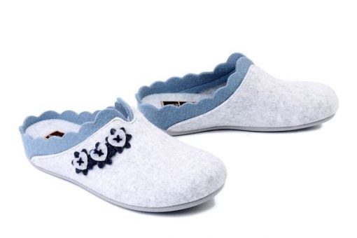 Kapcie damskie. Filcowa cholewka. Filcowa, wymienna wkładka. Elastyczna, antypoślizgowa podeszwa.