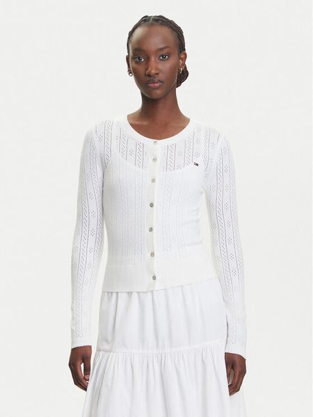 Tommy Jeans Kardigan Pointelle DW0DW20966 Biały Regular Fit