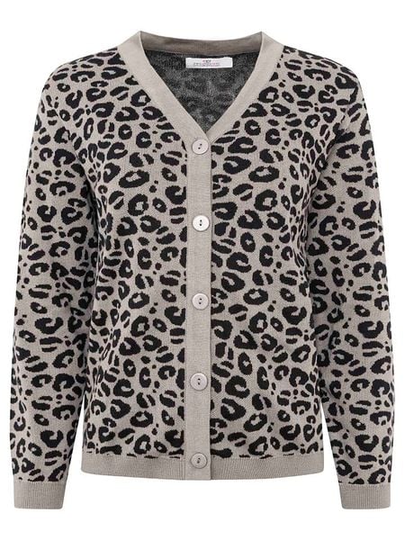 – czysta bawełna- dekolt: V- zapięcie: listwa guzikowa- ściągacz: zakończenia rękawów, dolny brzeg- krój: luźny- wzór: panterka