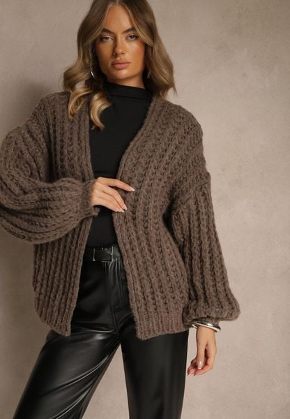 Brązowy Nietoperzowy Kardigan Bez Zapięć z Domieszką Wełny i Wiskozy Rallisa