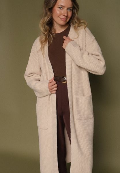Beżowy Niezapinany Kardigan z Bawełną o Długim Kroju Asorisse