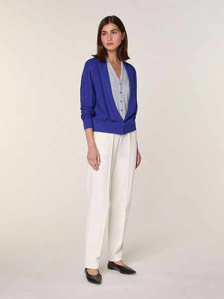 – czysta wełna merino- dekolt: V- zapięcie: listwa guzikowa- ściągacz: zakończenia rękawów, dolny brzeg- look: warstwy, jednokolorowy