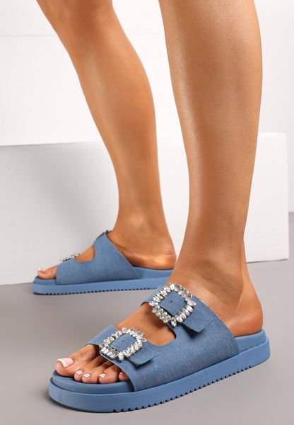 Niebieskie Klapki z Dwiema Klamrami Ozdobionymi Cyrkoniami Zellema