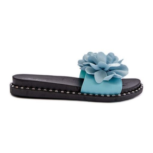 Klapki Damskie Ozdobione Kwiatami Niebieskie Cellanen
