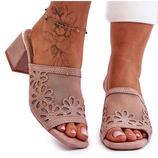 Klapki Na Obcasie Z Siateczką S.Barski KV-612-1 Nude beżowy