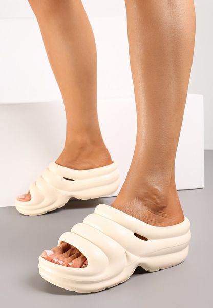 Tęgość stopy: Luźny, Rodzaj obcasa: Płaski, Wkładka/wyściółka: Guma, Materiał: Guma, Nosek buta: Otwarty, Zapięcie: Wsuwany/otwarty, Sezon: Całoroczny, Kod produktu: 298063, Kolor: Beżowy