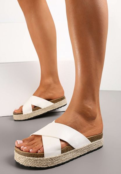 Białe Klapki z Korkową Podeszwą Ozdobioną Plecionką z Juty Konuela
