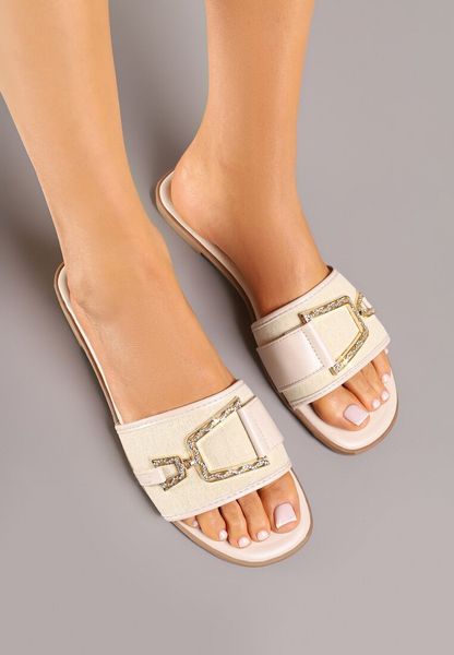 Beżowe Klapki z Metalową Ozdobą i Cyrkoniami Rinolissa