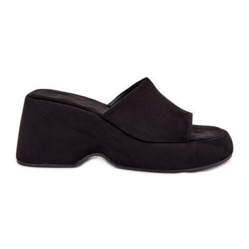 Eko Zamszowe Klapki Damskie Na Platformie I Koturnie Czarne
