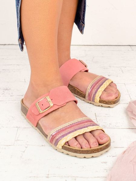 – zapięcie: sprzączka- noski: otwarte- detale: plecionka- wkładka: ergonomicznie formowana- podeszwa: antypoślizgowa