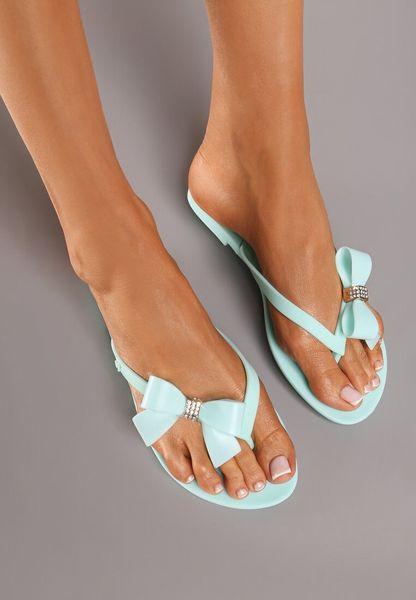 Jasnoniebieskie Japonki na Płaskiej Podeszwie z Cyrkoniami i Kokardką Tinnema