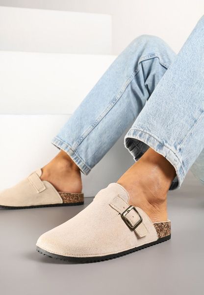 Beżowe Klapki Chodaki z Ozdobną Klamrą Alissaria