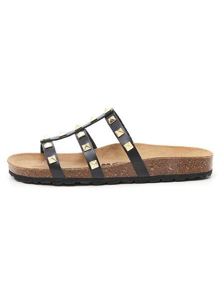 – zapięcie: bez- noski: otwarte- detale: ozdobne nity- skórzana wkładka: ergonomicznie formowana- podeszwa: antypoślizgowa