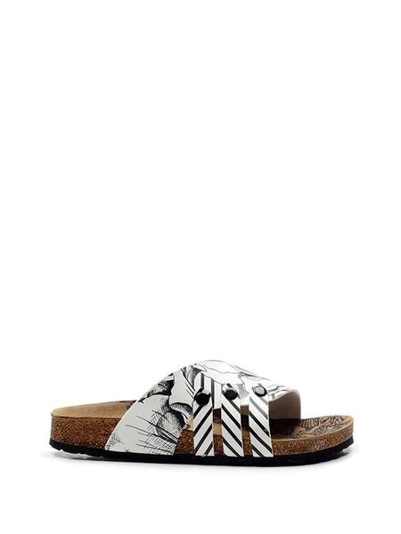 – materiał wierzchni ze skóry syntetycznej- zapięcie: bez- noski: otwarte- powierzchnia: wzorzysta- wkładka: ergonomicznie formowana- podeszwa: antypoślizgowa