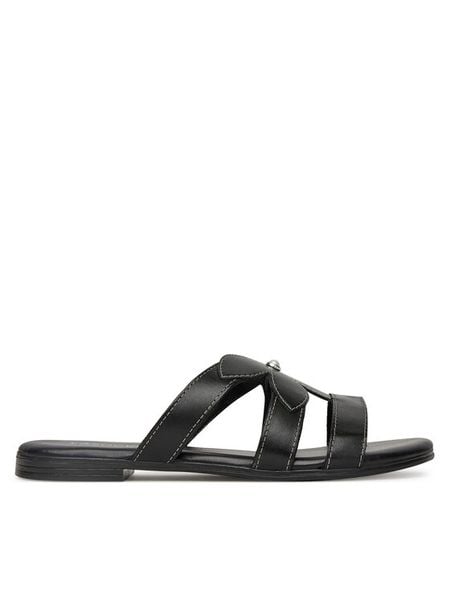 Czarne Klapki z Wyściółką z Imitacji Skóry na Płaskiej Podeszwie z Metalową Ozdobą Caloen