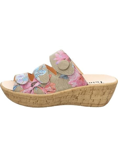 Think! Skórzane klapki w kolorze beżowym ze wzorem na koturnie rozmiar: 38