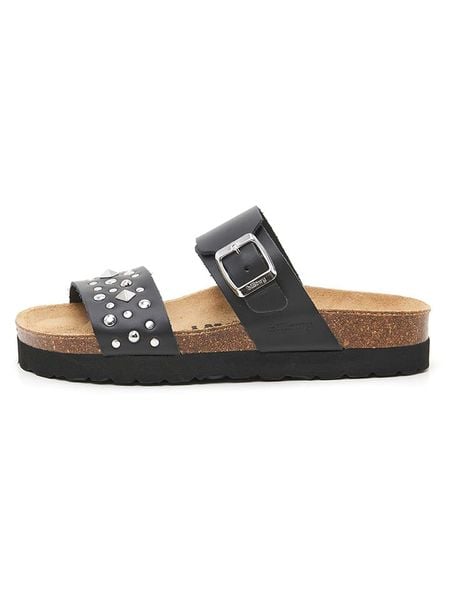 – zapięcie: sprzączka- noski: otwarte- detale: ozdobne nity- skórzana wkładka: ergonomicznie formowana- podeszwa: antypoślizgowa