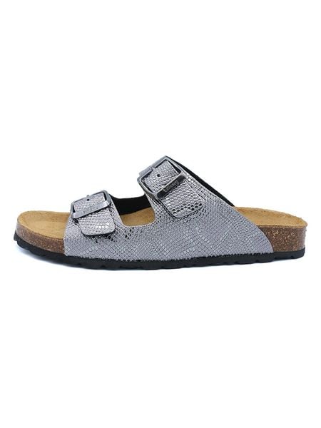 – skórzana wkładka: ergonomicznie formowana- powierzchnia: z metalicznym połyskiem- zapięcie: sprzączka- noski: otwarte- podeszwa: antypoślizgowa
