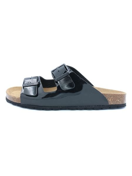 – skórzana wkładka: ergonomicznie formowana- powierzchnia: błyszcząca- zapięcie: sprzączka- noski: otwarte- podeszwa: antypoślizgowa