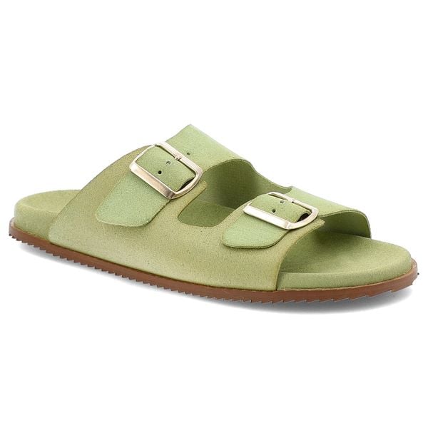 Klapki damskie HEE, na platformie skórzane z klamrami klasyczne, gruszowe, 25050